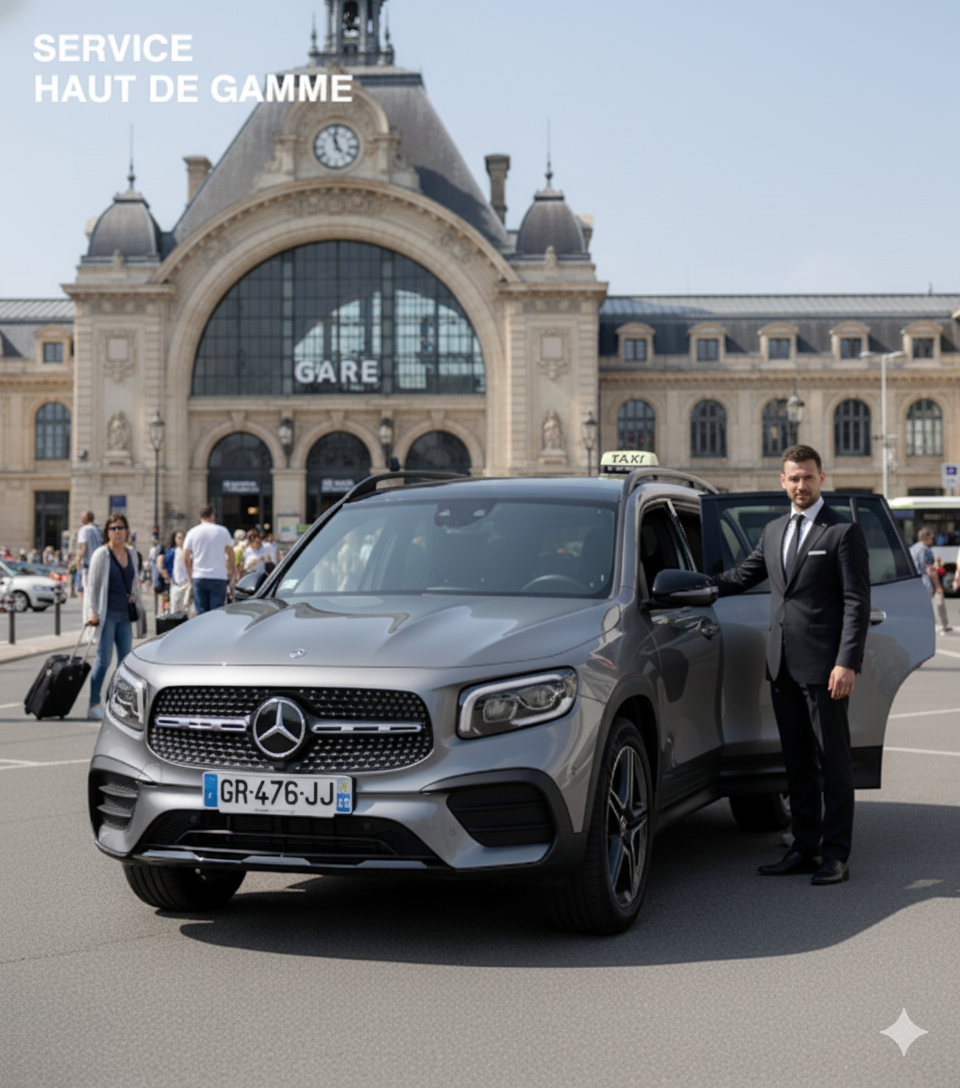 Mercedes GLB climatisé, chauffeurs professionnels. 24/7 dans tout le Gâtinais.
